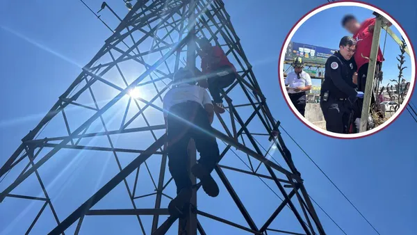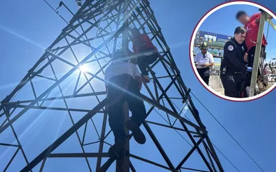 Policías rescatan a hombre que quería aventarse de una torre de alta tensión en Ecatepec.