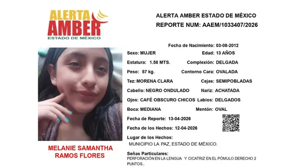 Se activa Alerta Amber para la búsqueda de Melanie Samantha Ramos Flores, de 13 años, vista por última vez en el municipio de La Paz.