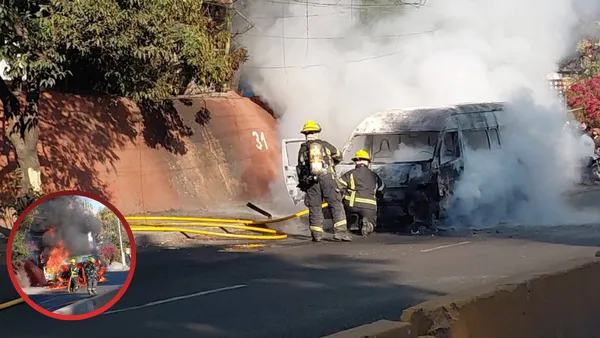 Combi de pasajeros se incendia en Atizapán