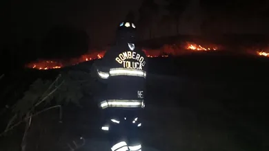 Bomberos de Toluca continúan las labores en el combate de un incendio de pastizal registrado la noche de este martes en el cerro de San Luis Obispo.