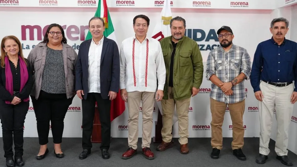 El presidente nacional de Morena, Mario Delgado estuvo acompañado ayer por el presidente del Consejo Nacional, Alfonso Durazo; los miembros de la Comisión Nacional de Elecciones, Citlalli Hernández y Alejandro Peña; los miembros de la Comisión Nacional de Encuestas, Ivonne Cisneros y Rogelio Valdespino, así como el secretario técnico del Consejo Nacional, Álvaro Bracamonte.